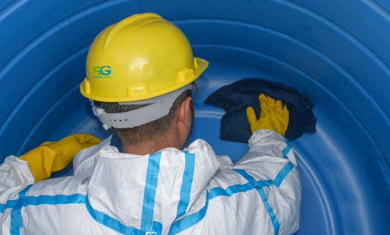 تفريغ الخزان من المياه وتنظيف الجدران الداخلية من الطحالب والرواسب.